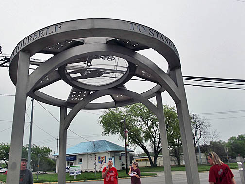 Aaron Hussey designed this memorial which includes an image from the meeting between King and Johnson in the Oval Office on January 18, 1964. It was unveiled on MLK Day 2014. |