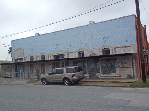 This building is an Italian Restaurant. The side has been painted to look like an Italian Villa. |